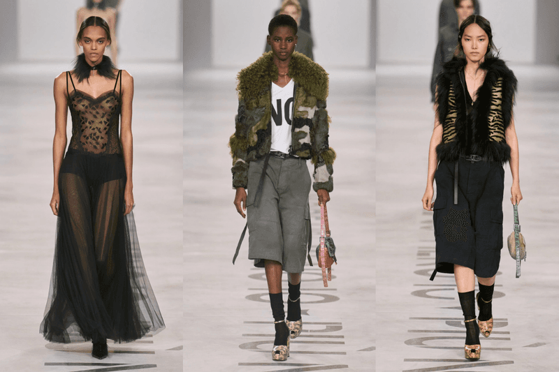 Maria Grazia Chiuri trouxe sua assinatura conceitual: uma moda que conversa com a mulher real, mas que também carrega discurso. A coleção equilibrou romantismo e pragmatismo — vestidos leves combinados com botas estruturadas, transparências contrastando com cortes rígidos.