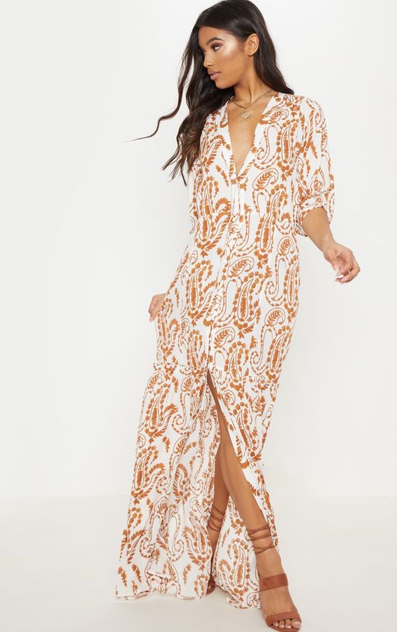 A estampa Paisley é originaria da Índia e teve seu momento de descoberta na década de 70, tornando assim ícone a ser usado em lenços. Ela veio forte a alguns anos nas camisas femininas e agora vem em vestidos e biquínis.