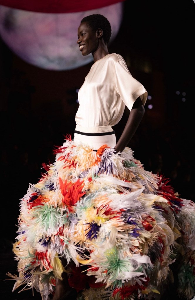 Esse jogo entre materiais é uma das estratégias mais elegantes da coleção, porque transforma a passarela em uma narrativa tátil, onde o espectador “sente” as peças mesmo pela tela.