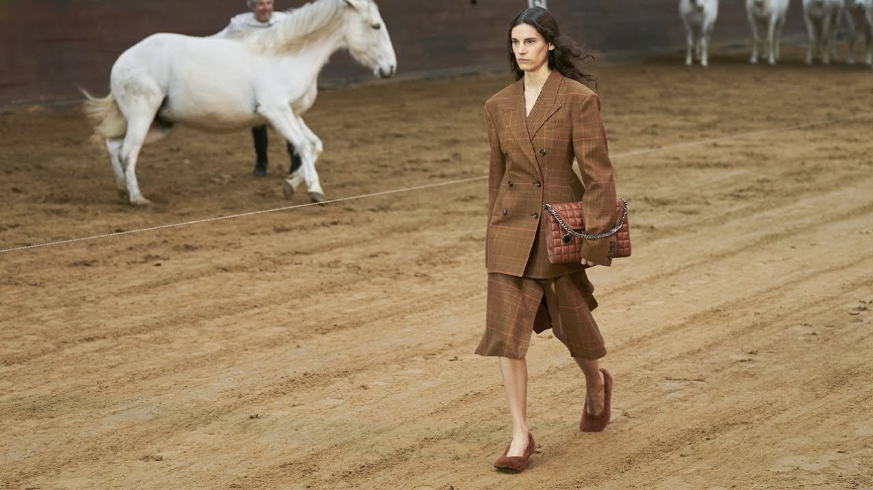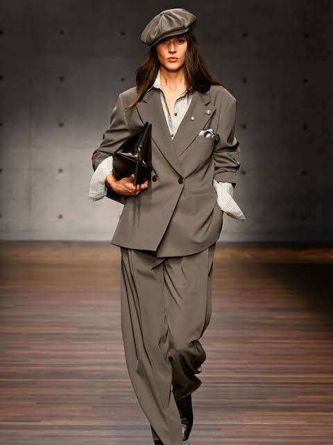 Uma das grandes tendências observadas no vídeo é o uso de casacos longos, alongados e imponentes, que conferem à silhueta uma elegância dramática. Esses casacos deslizam quase como mantos sobre a passarela, ficando entre o clássico e o teatral — um item que, no inverno europeu, se torna tanto necessário quanto aspiracional.