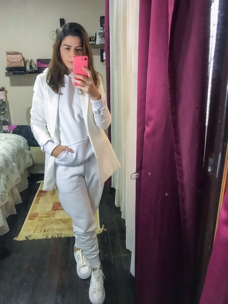 O que eu usei essa semana: moletom com blazer. A combinação parece inusitada, mas fica perfeita. Principalmente se optarmos por usar a mesma cor nesses itens. Muitas vezes queremos sair de casa mais confortável, mas de certa forma arrumadas.
